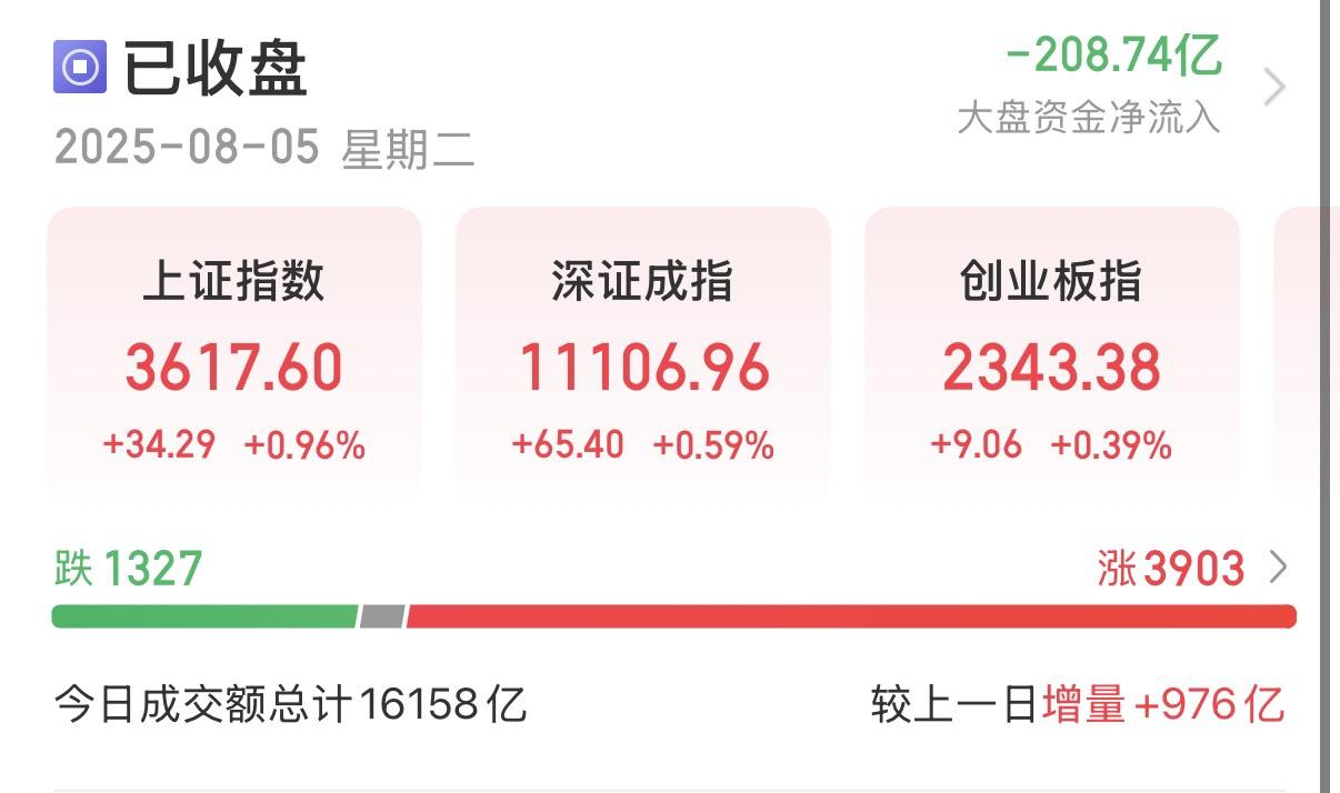 A股三大指数集体收涨,截至收盘,沪指涨0.96%,深成指涨0.59%,创业板指涨0.39%,北证50指数涨0.25%,沪深京三市成交额16158亿元,较上日放量976亿元。两市超3900只个股上涨。