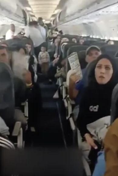 一架载有153名来自加沙的巴勒斯坦人的包机降落在南非约翰内斯堡机场(视频截图)